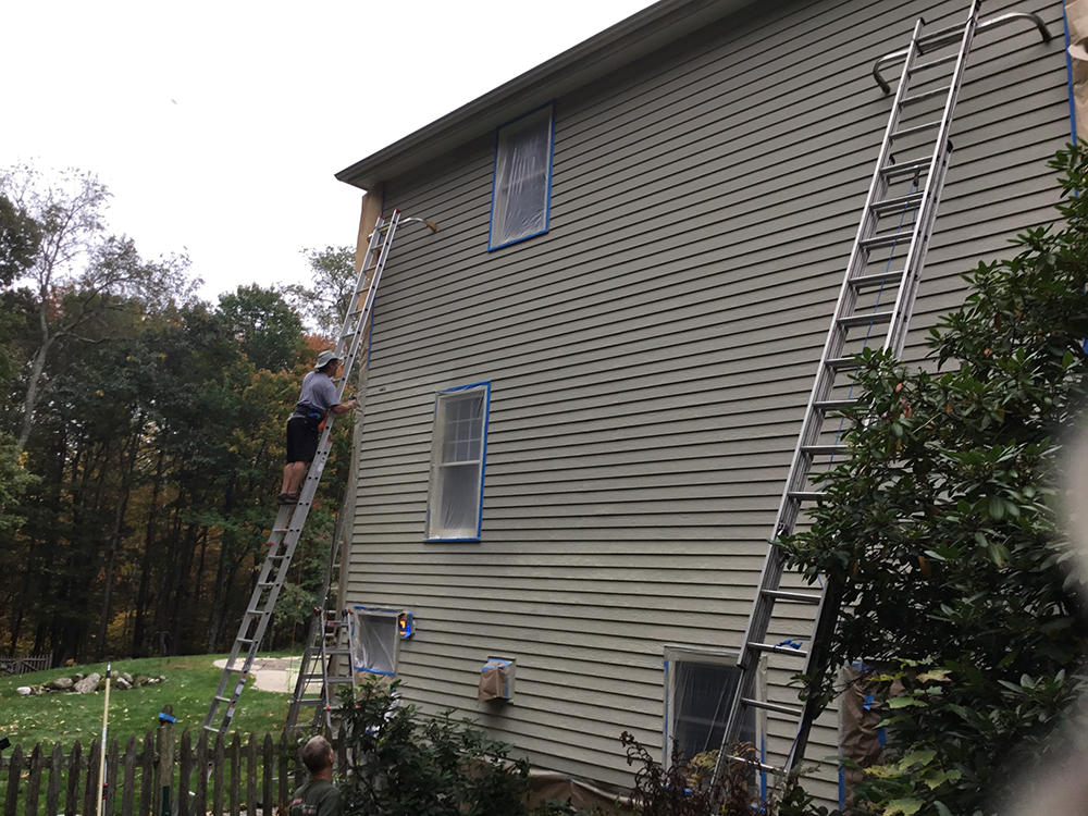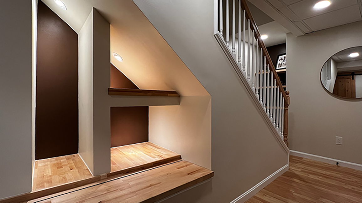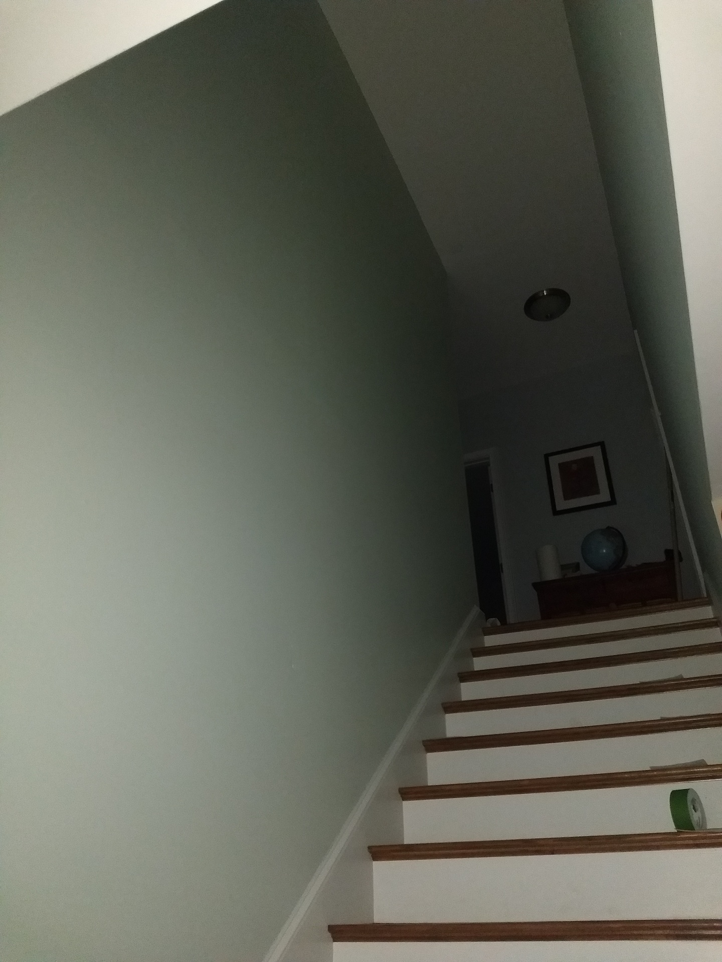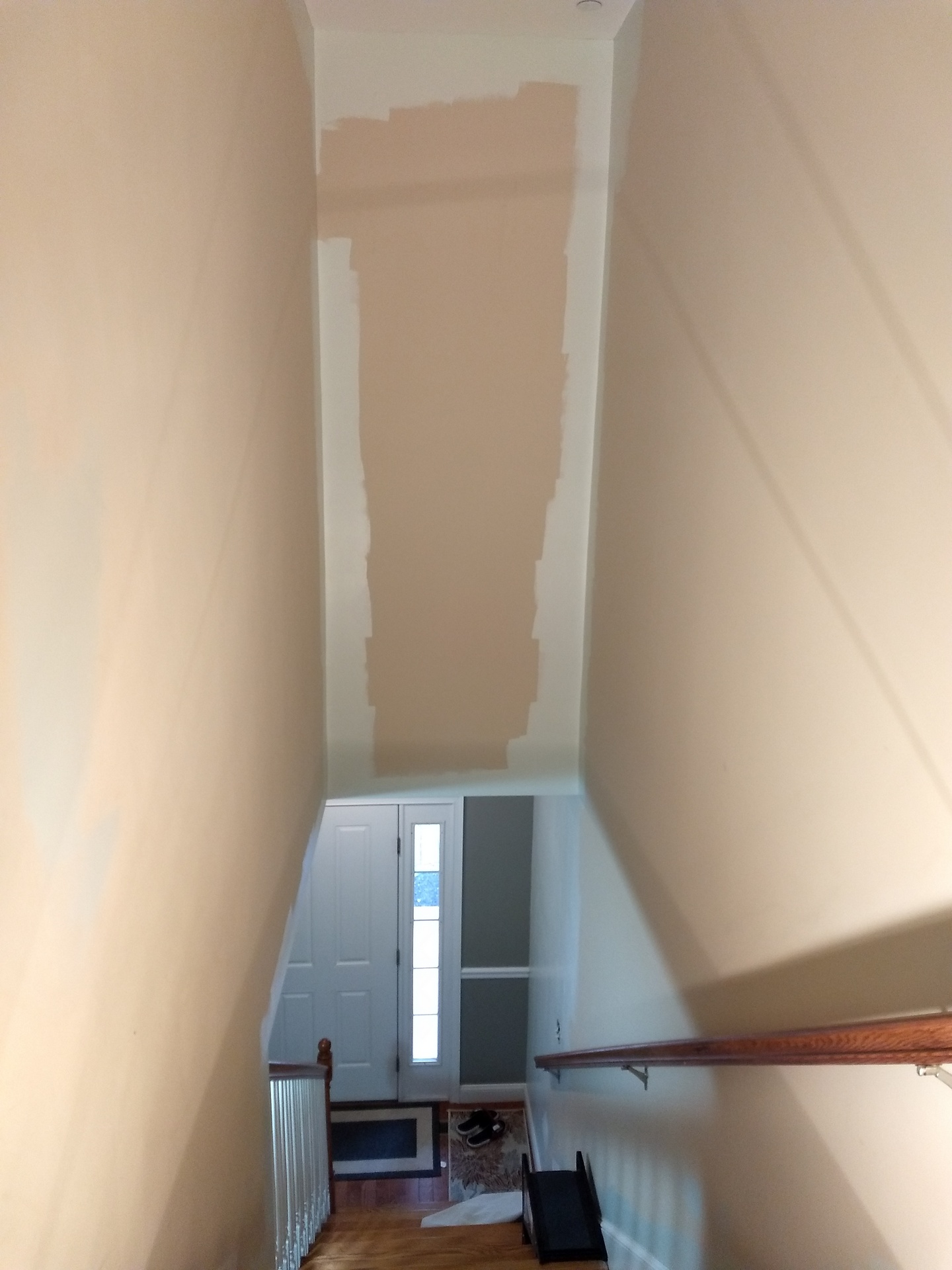 Before I started, the stairwell was a dated color that failed to match the customer's vision of the downstairs. With a different shade of the first-floor color, the stairs now transitioned the downstairs to the upstairs. The lighter shade allowed the stairway to avoid being a dark stairwell. The client felt it was a dramatic difference for her home.