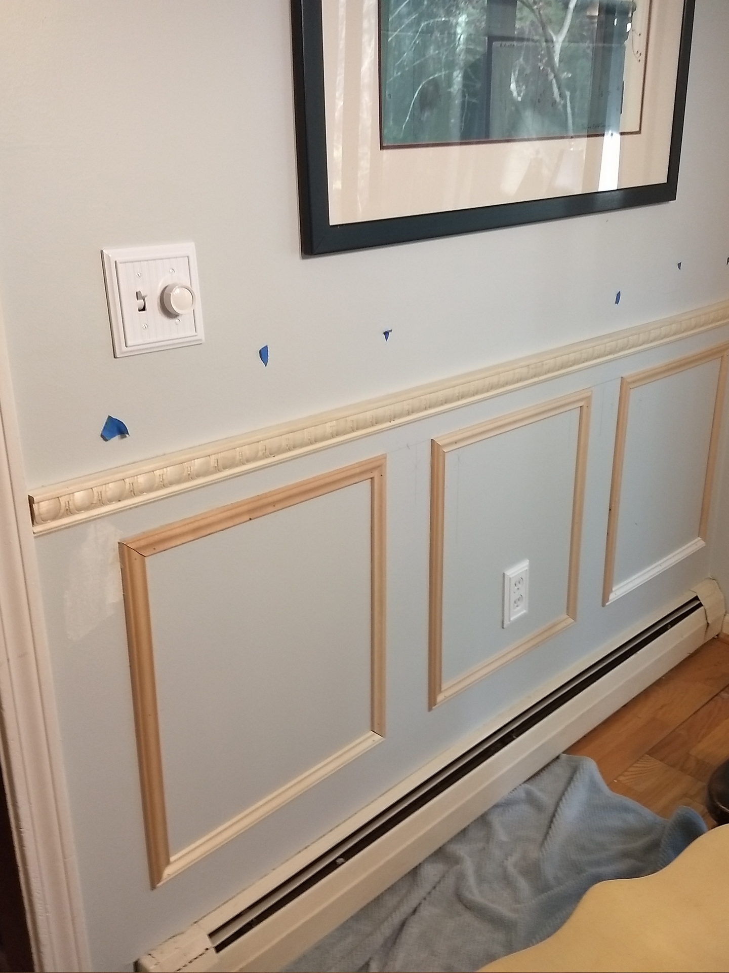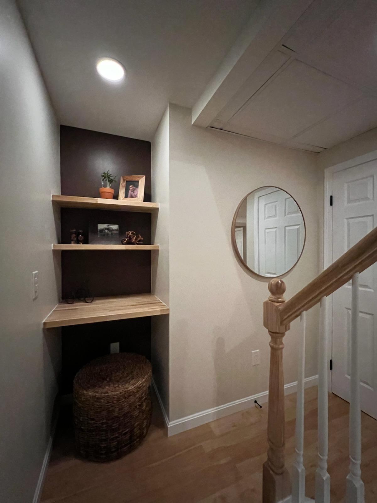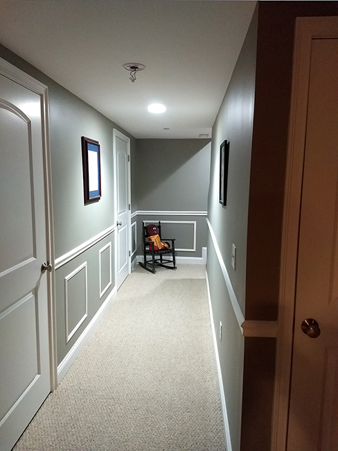 The client wanted to rejuvenate their hallway. We agreed on installing crown molding and changing paint color. I installed the crown molding to add depth to a flat wall. This was going to make a big difference for the homeowner. With the crown molding painted, the wall is ready for the paint the client selected. The hallway took on a new look.